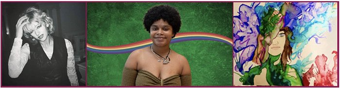 Fran Gardner, left. Sisterhood Exhibition, right.