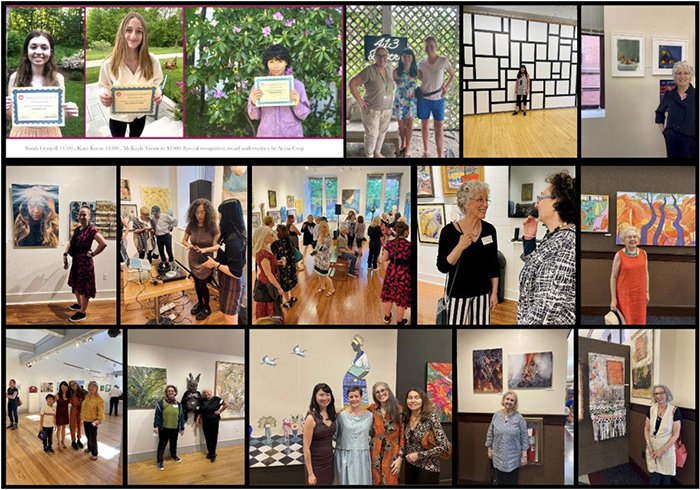 We support our members by providing in-person and virtual exhibition opportunities, PR visibility, and a sense of community, i.e., gathering at Madolin’s strikingly creative and beautiful home before The Gallery Night Providence Reception, meeting up befo-re and afterward with colleagues in Cotuit, Newport, Providence, Boston, South Dart-mouth, and the Berkshires. We did eight in-person 2023 exhibitions in 2024, with nine to look forward to. We begin with two ”WHERE DO WE COME FROM? WHAT ARE WE? WHERE ARE WE GOING?’ Art Complex Museum and ‘Boston Muse: Womxn’s Art’ Scollay Square Gallery, The Galleries at Boston City Hall will be installed soon. An ongoing rotating gallery on Newbury Street, Junior League of Boston, long-standing partnership to showcase works at their HQ building, ‘Marketing and Social Media as Part of your Creative Arsenal IX’ workshops, Proud of our 2023 Scholarship Recipients above, and a special recognition scholarship named after the Anita Helen Cohen highlighted in profiles.