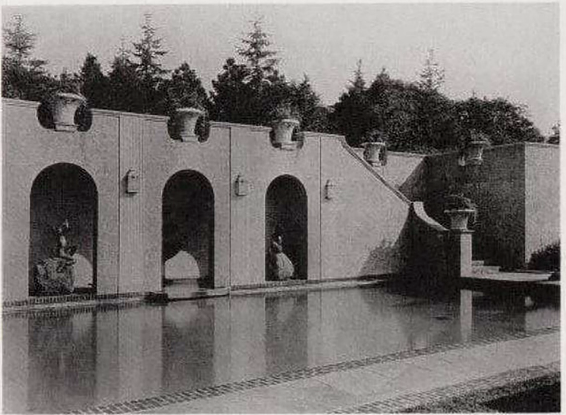 The charm of her garden pieces is evident in vintage photographs of the Major Fullerton Weaver estate in East Hampton.4 The bronze Piping Pan and a companion figure, Midsummer, are seated in wall niches alongside the estate’s swimming pool.