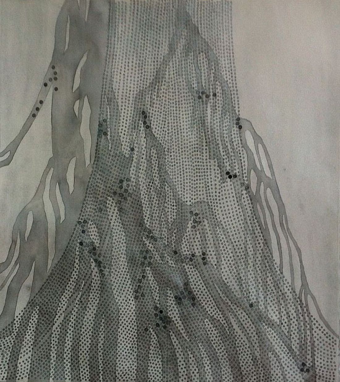 I cover the surface of the paper or canvas with similar brushstrokes or draw hundreds of little circles. The meditative quality of this process sustains me. I relax into a groove and time vanishes.