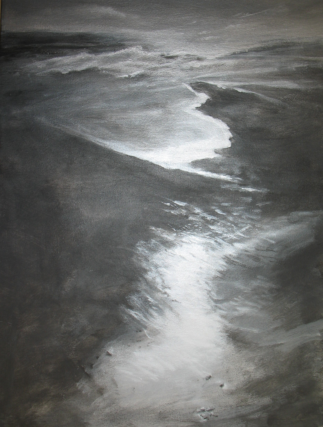 My first 30 paintings are titled Argento because my paintings are primed with silver metallic acrylic which gives a refractive quality to the surface. As a result, when the viewer walks past a painting the light continually changes. Currently, with my exploration of this painting style, I have felt a need to create titles that describe the actual seascapes. Come and experience the essence of seascapes through my paintings.