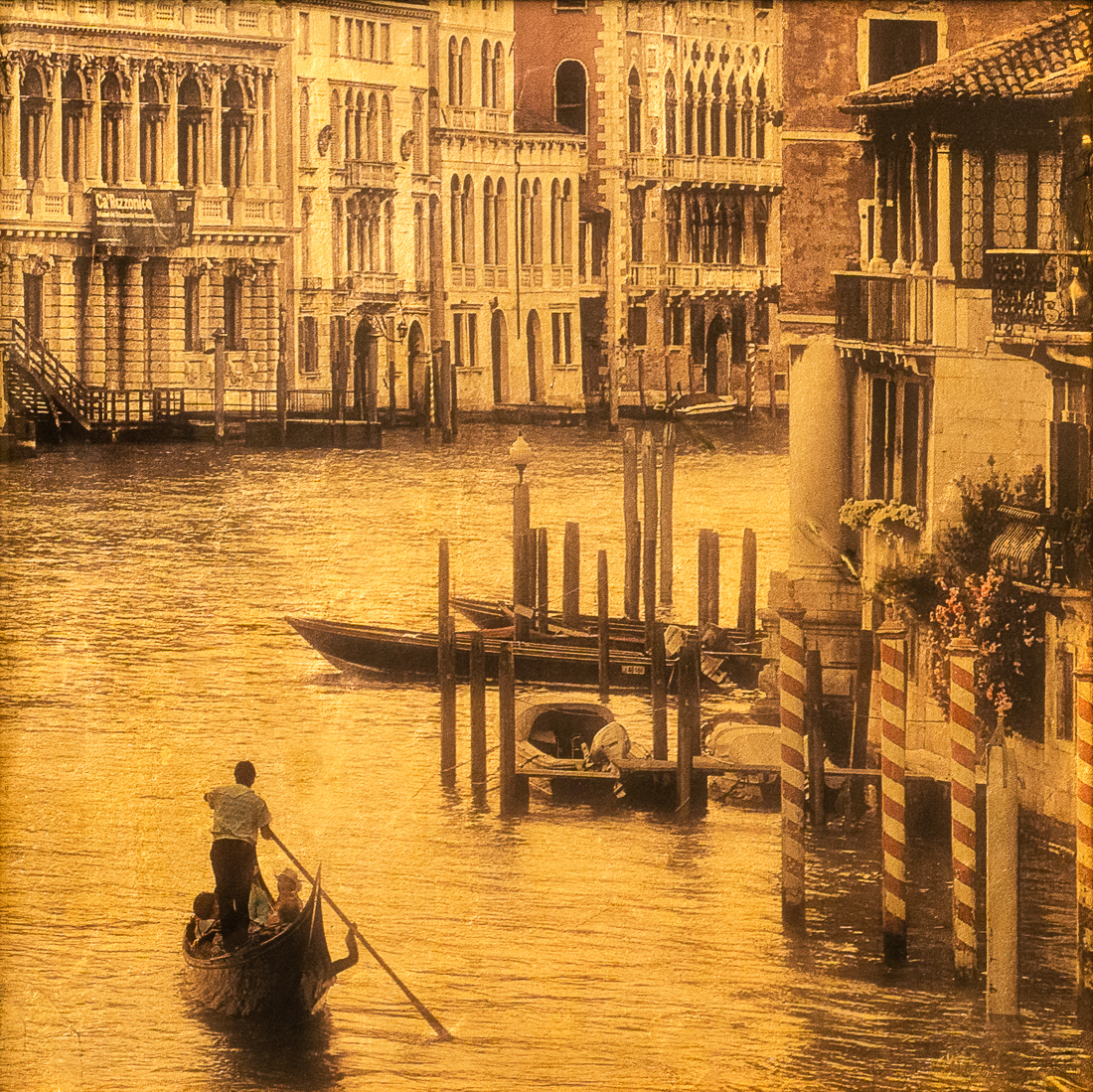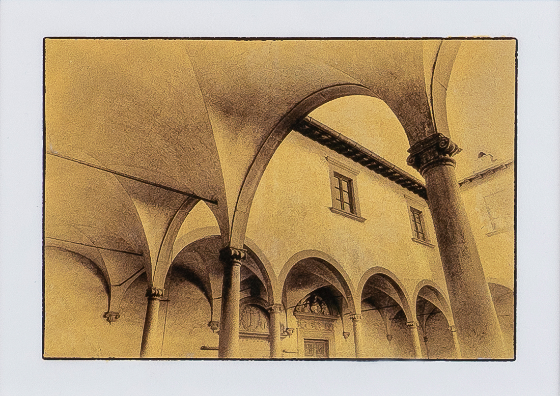 The work is created using a couple of processes; The first is digital pigment ink on acid-free transparent vellum paper gilded on the back with 24kt Gold, Sterling Silver, or Platinum Leaf. The second is chemically transferring images printed on transparency film to glass and gilding the transferred image on the glass.