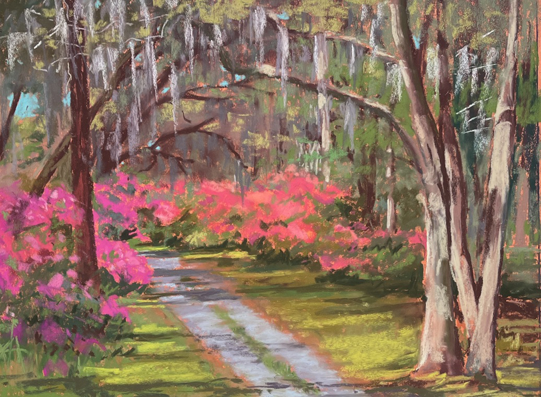 I love to paint outside. There is something about being among nature that I can’t stop yearning for . Hearing the birds and even the sounds of people going about their business bring a calm sense of relaxation and joy in the moment. I have an ethereal feeling when I am outdoors gardening, kayaking and painting.I hope to bring to my paintings what I’m experiencing so that I can convey that to my viewers. I want them to feel that they are experiencing the moment too.