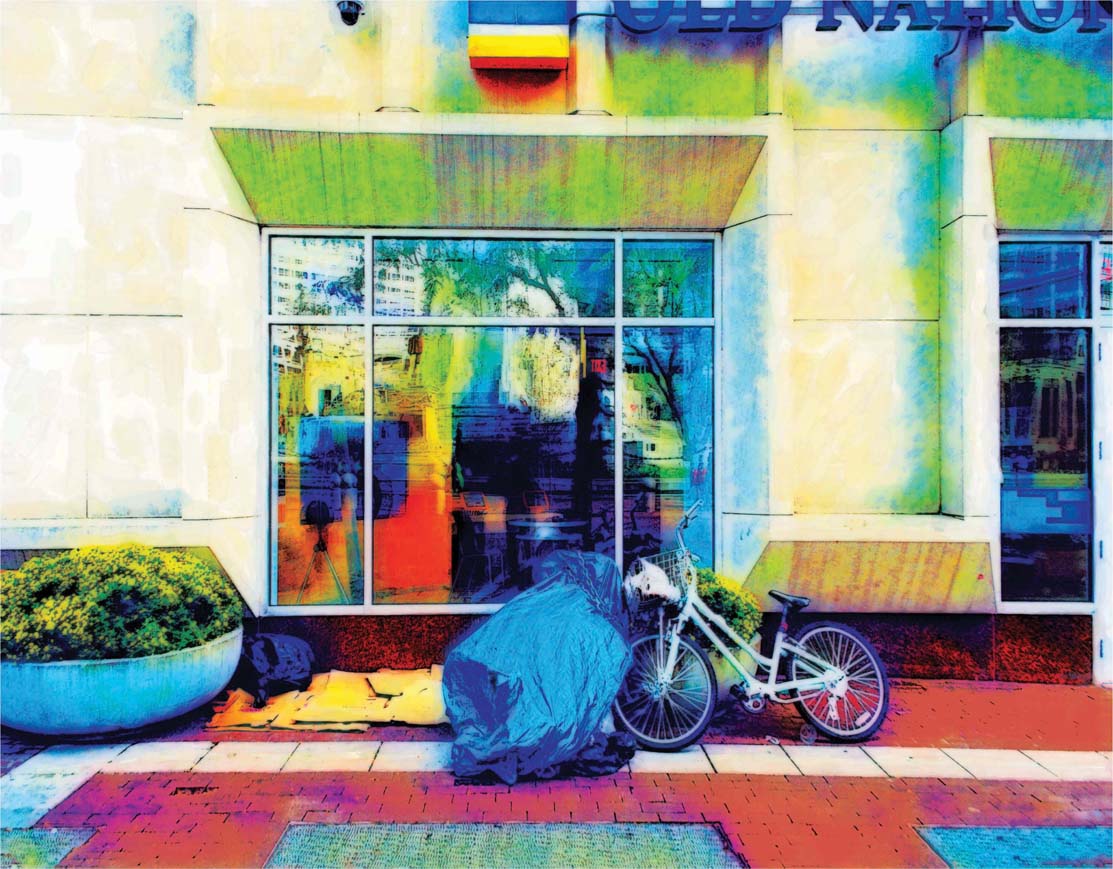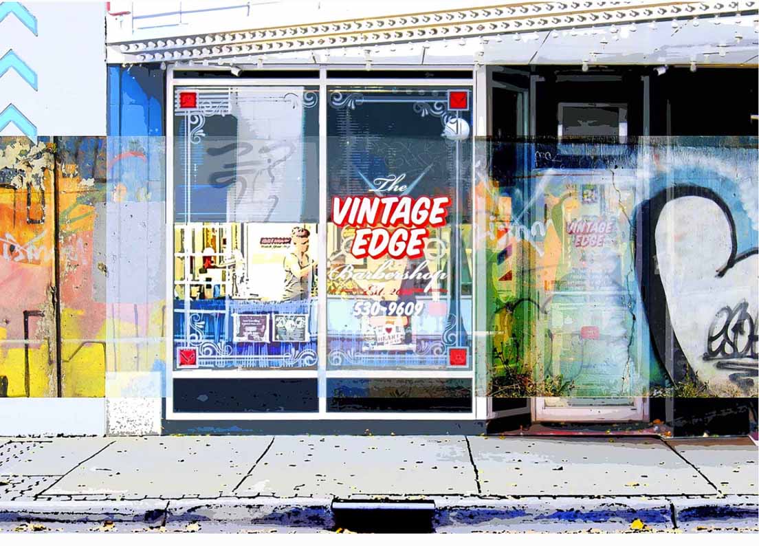 My primary focus is urban topics. I’ve explored downtown buildings with display windows that blend the window content with the surrounding reflections. At times, I digitally add graffiti to buildings. I love the raw beauty of graffiti.