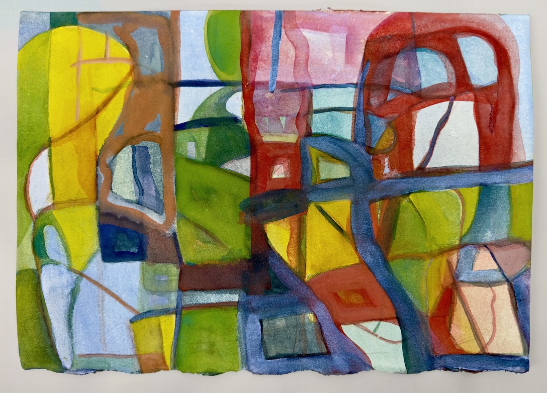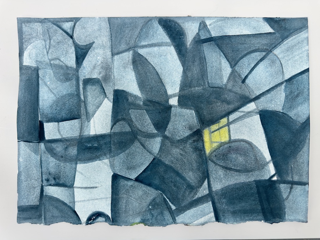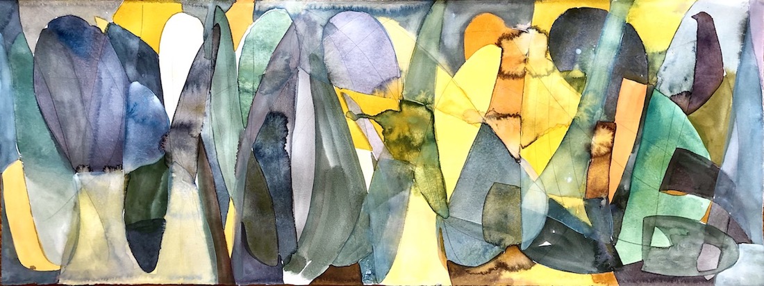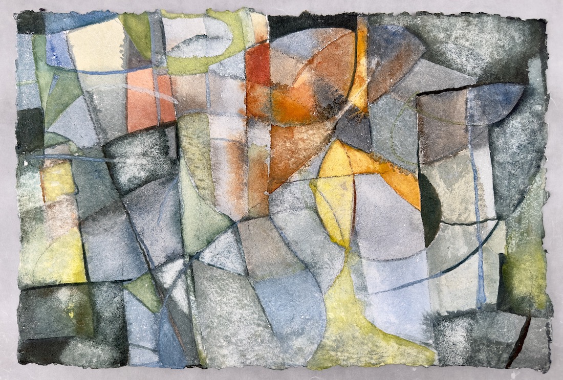 Akin to visual music and conceived of as thought-forms, each disparate watercolor is present-rooted. Intimate in scale and touch, the luminous white paper is a reflective space where water and color interact.