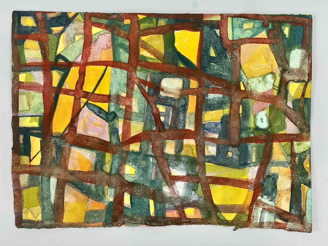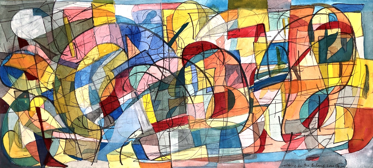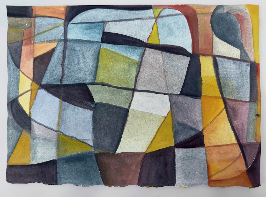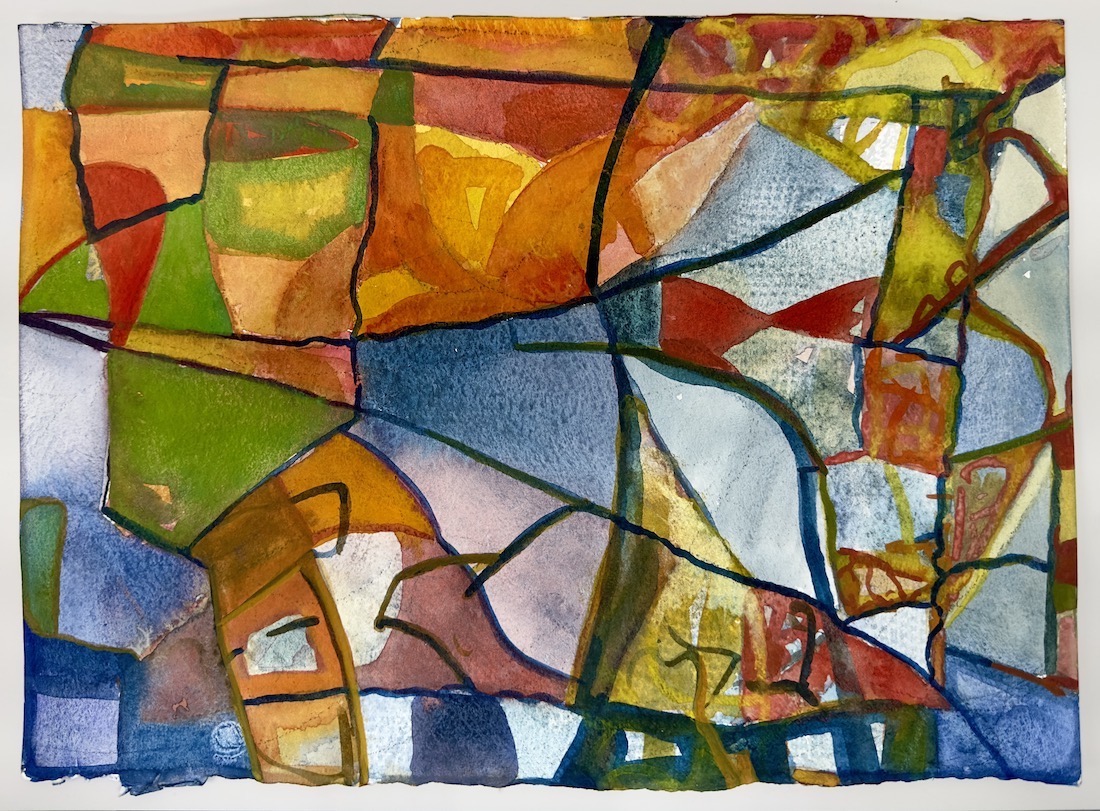 Akin to visual music and conceived of as thought-forms, each disparate watercolor is present-rooted. Intimate in scale and touch, the luminous white paper is a reflective space where water and color interact.