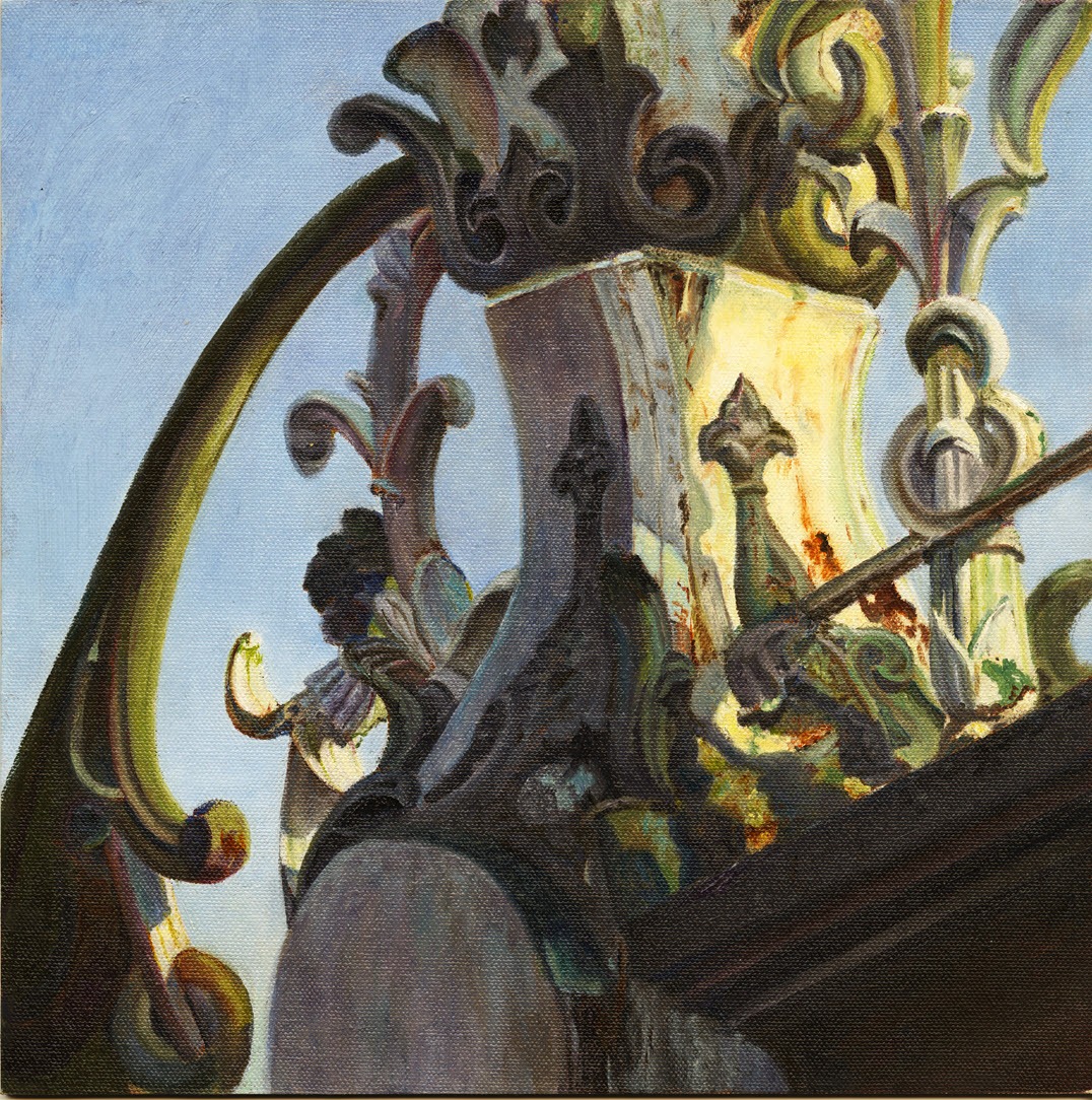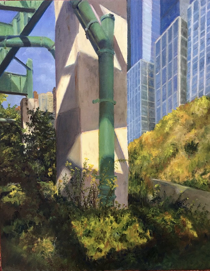 I am a representational painter working in oils and watercolor. As a native New Yorker surrounded by the incredible variety and energy of the city, I seek out the details and ‘small moments’ when the light and shadow reveal unexpected beauty in ordinary objects. I often paint highly zoomed-in details of buildings and infrastructure, incorporating dramatic light and perspective to expose the craft and subtle color in everyday objects. I have recently finished a series of paintings of a cast-iron bridge and am continuing work on an ongoing series of images of the Henry Hudson Parkway, in addition to cityscapes and studies of stone and metal.