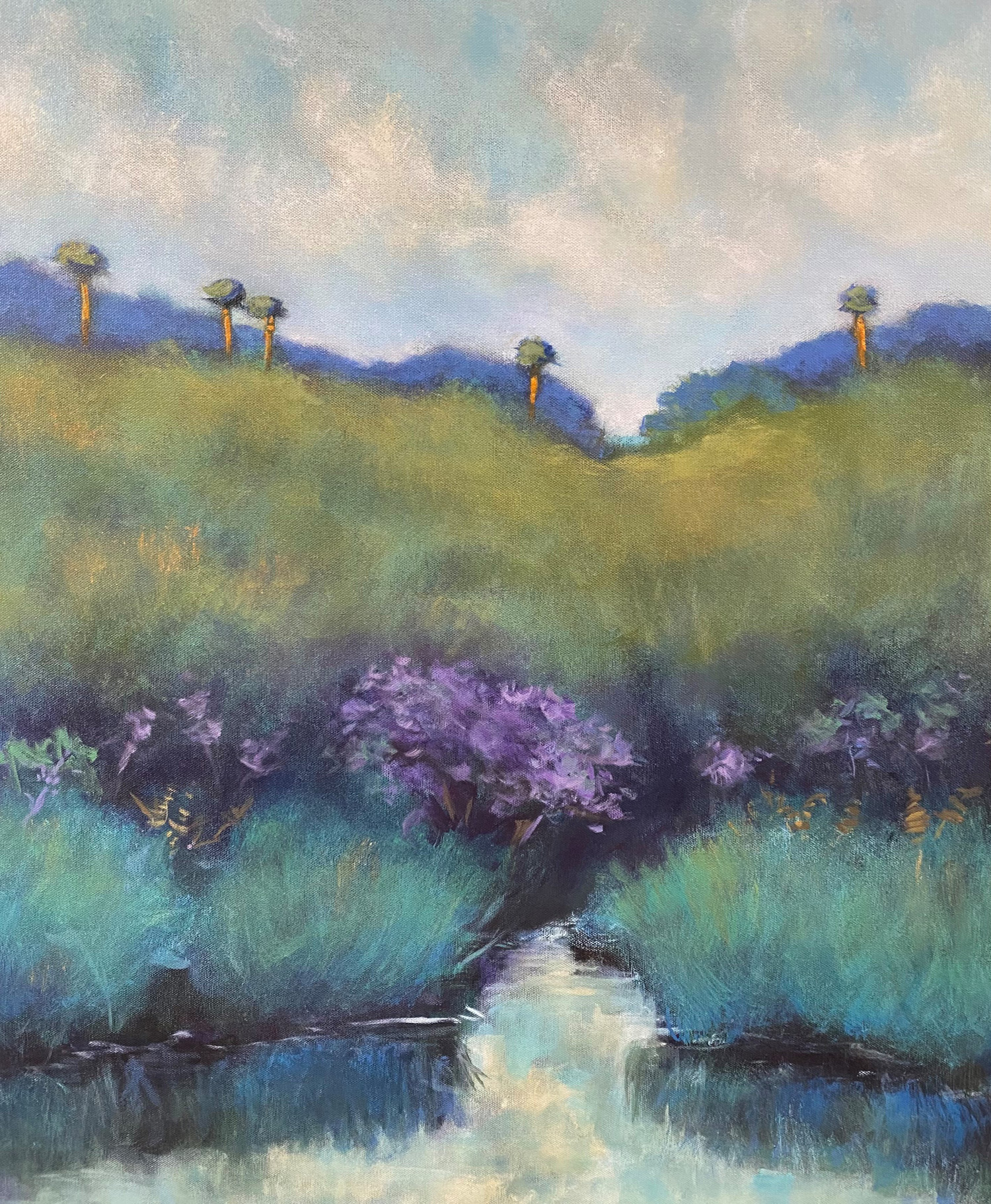 Using established art principles to begin and intuition as the work progresses, I paint the landscapes of Florida moving from abstraction to realism. My images are ancient and familiar—palms, prairie, water, and clouds. Through them, it is my fondest dreams is that you will hear the voice of the Everglades through my work.