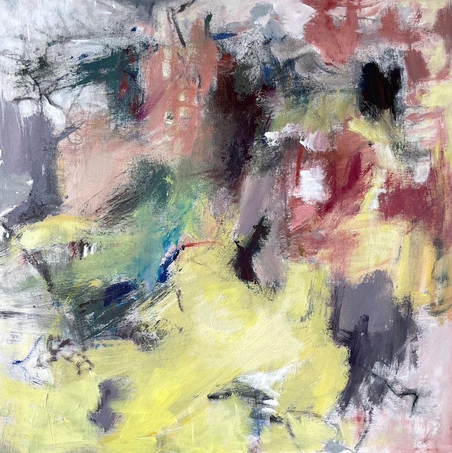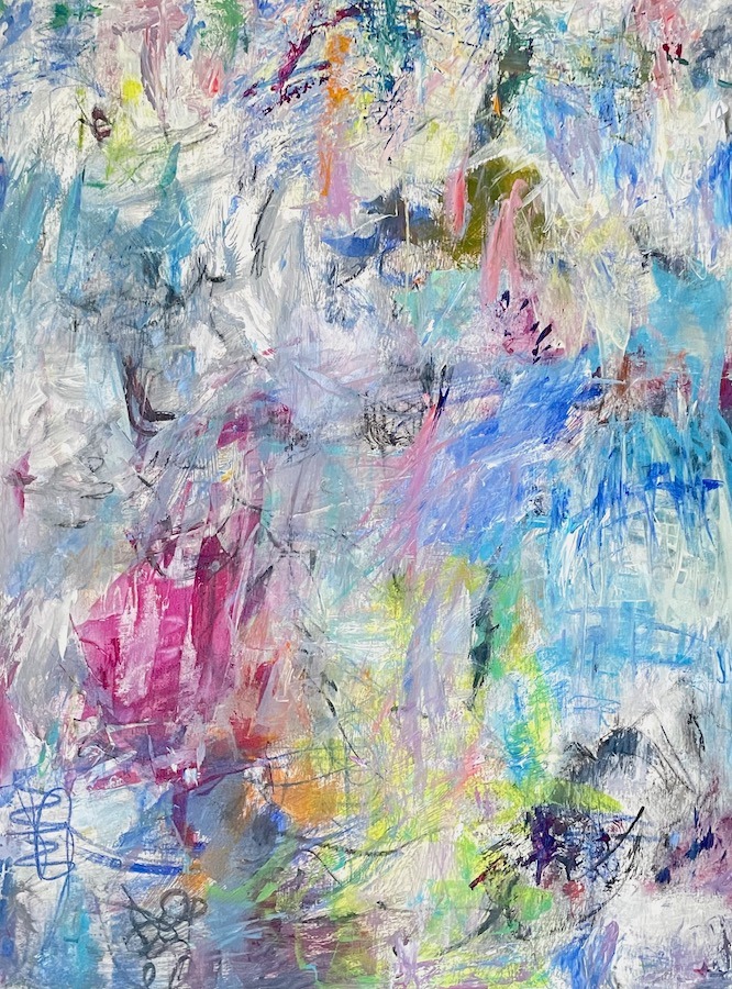 My work arrives intuitively as a fusion from my mind, heart and hand at any particular time. While accessing a mood, longing or memory in my mind’s eye, my paintings explore the limitless possibilities of abstraction. I’m intrigued by color relationships. Starting with simple marks, I end up many layers of paint later with overlapping colors that shift and dissolve, creating a movement of floating, amorphous shapes. Mainly working with quick-drying acrylics, pastels, graphite or other media become mixed with the paint. Surprises occur. Each work is a set of discoveries and an exploration unto itself. For me, painting is a process offering new beginnings, learning and growth. It is a journey I love.