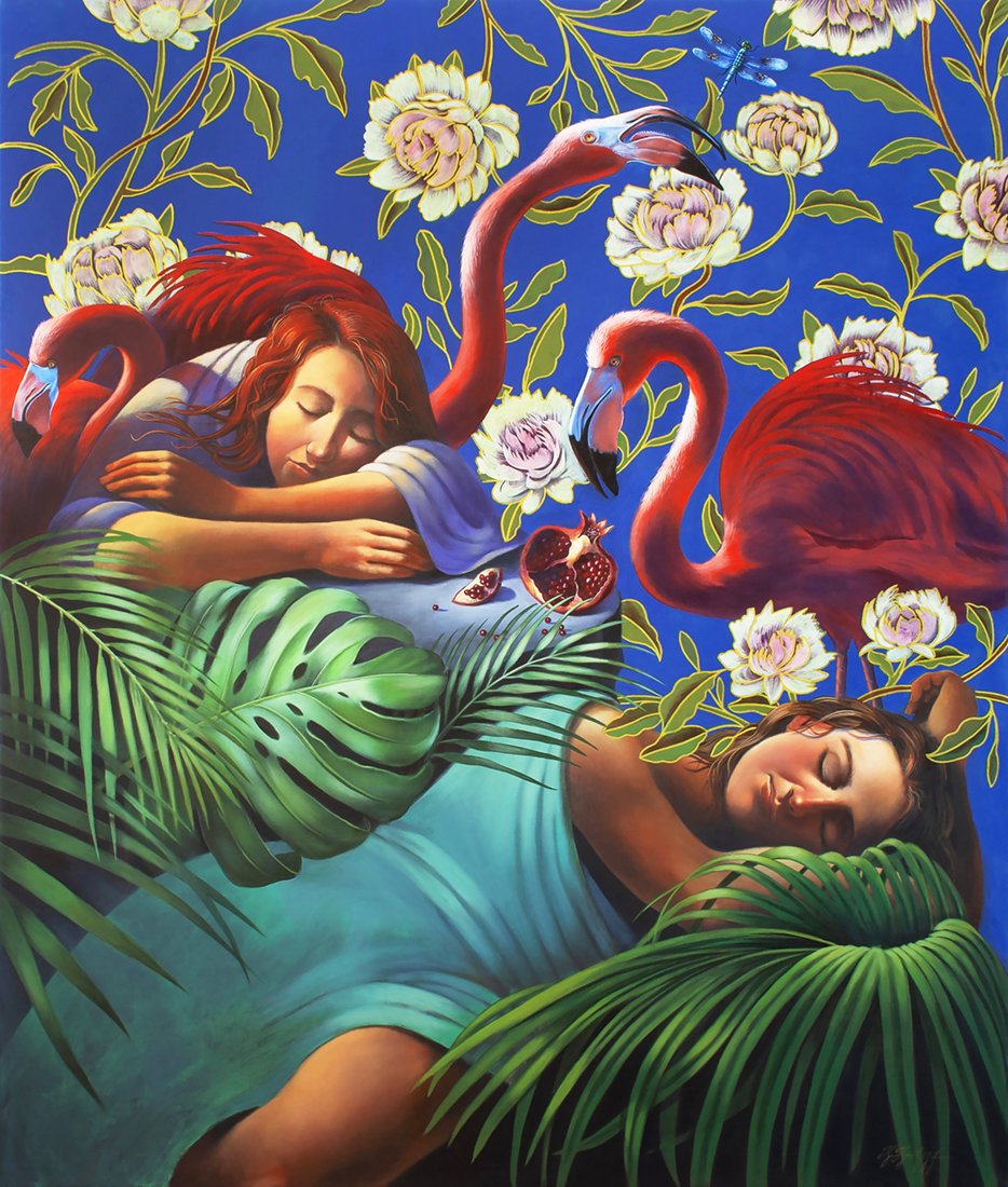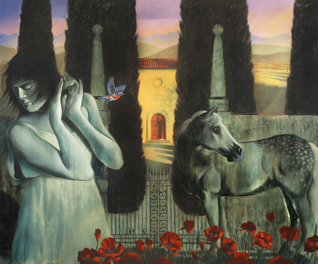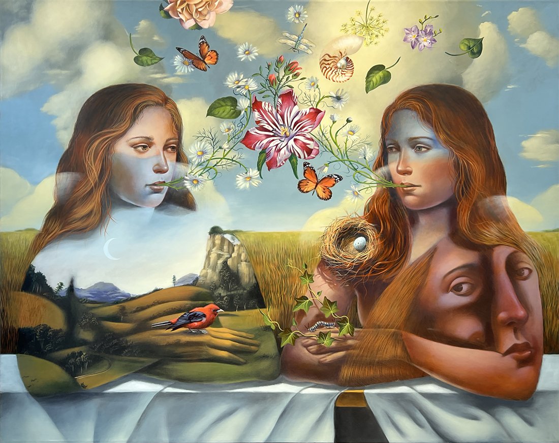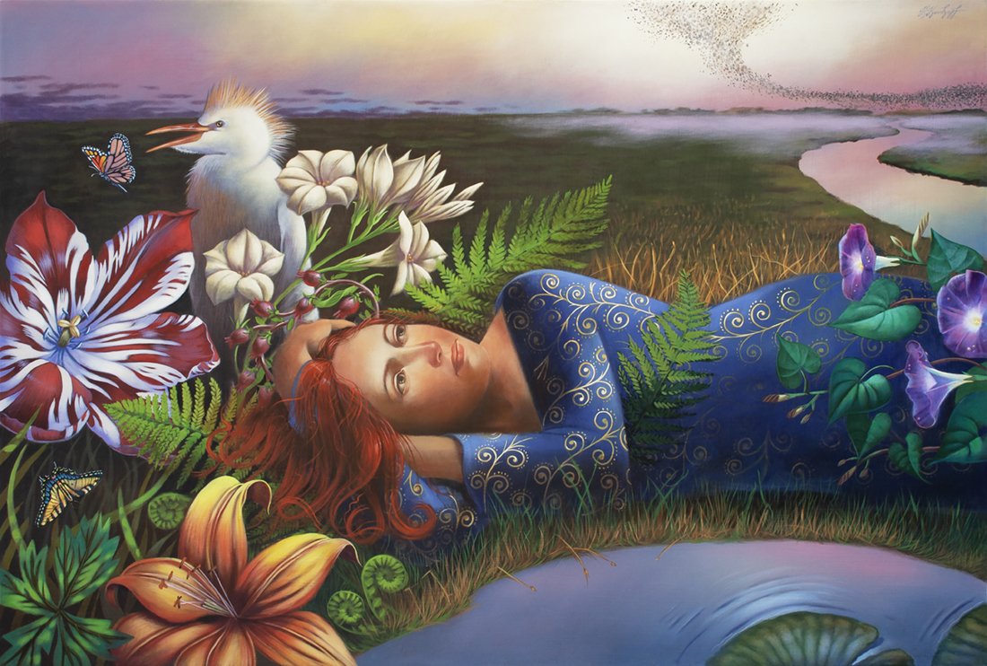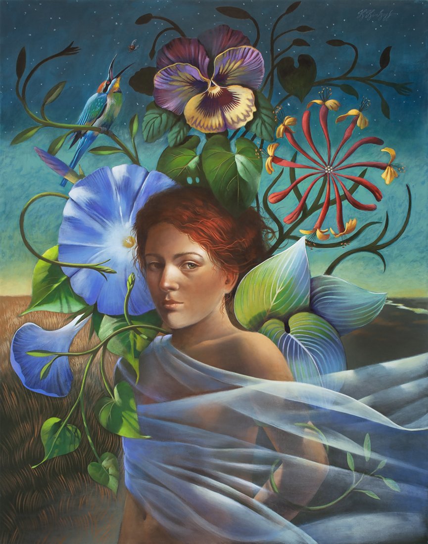 Nature and the female figure are central to my work. These powerful players create scenarios of unlimited possibilities that express symbology, spirituality, strength, and beauty. Basically self-taught, I am a humble student of The Flemish and Italian Masters, Romanticism, and Surrealism, and am inspired by teachings and writing of Joseph Campbell, Deepak Chopra, and Mary Oliver.