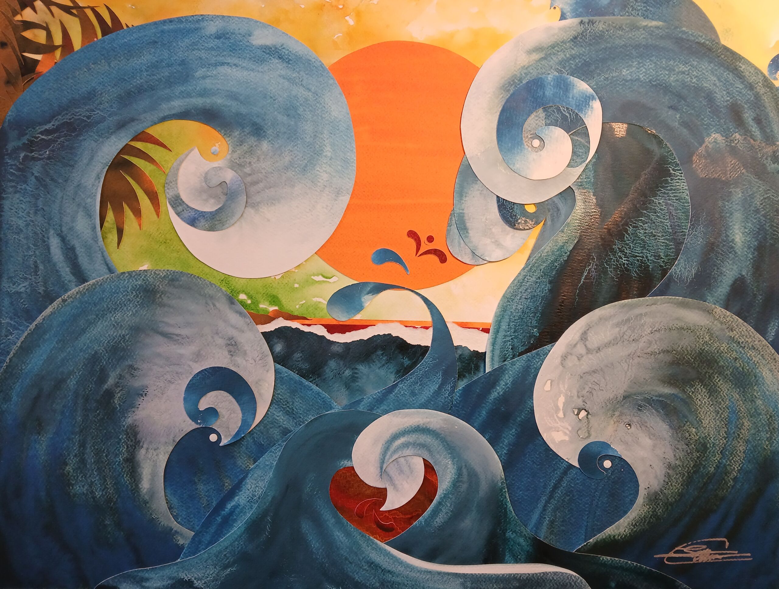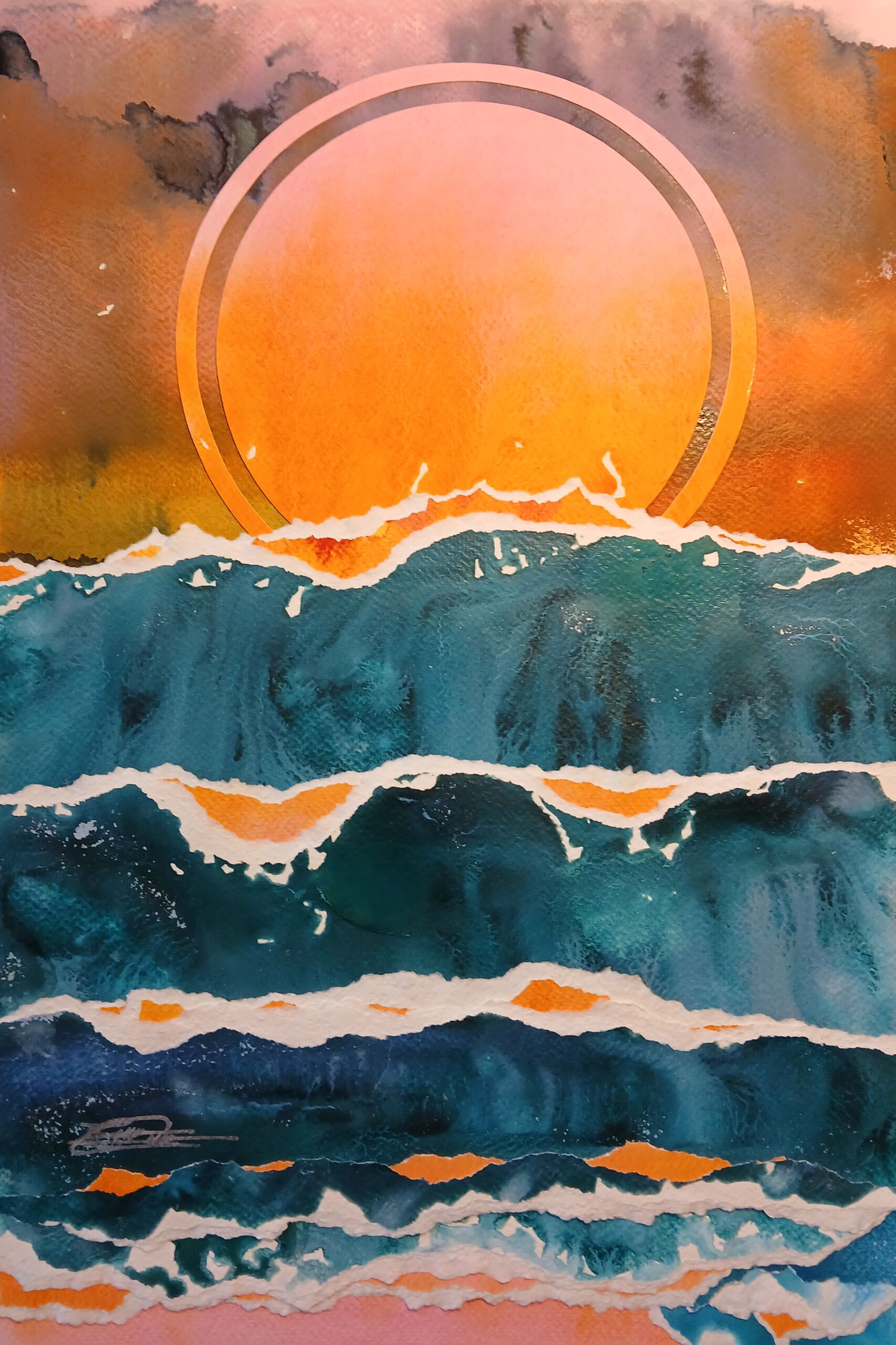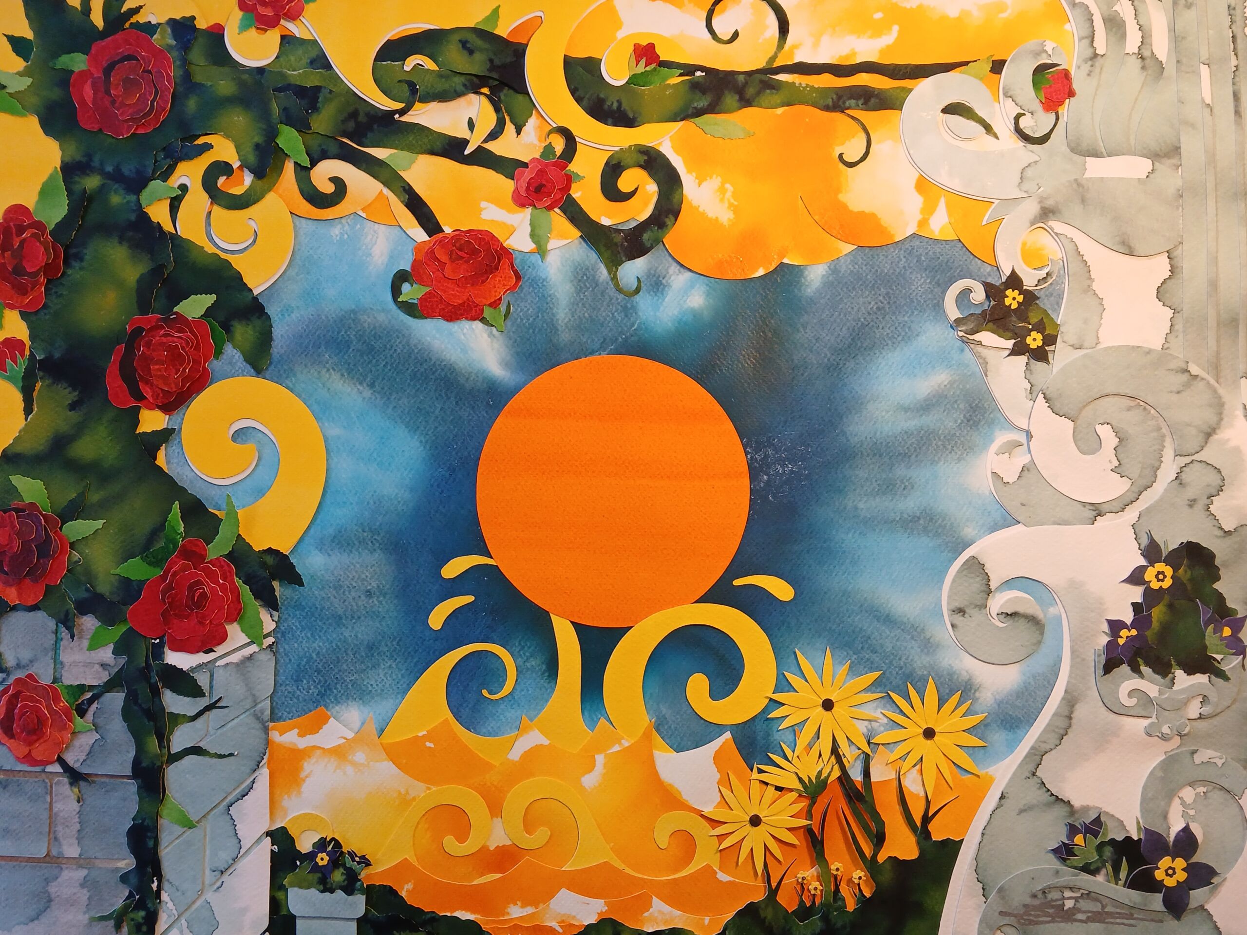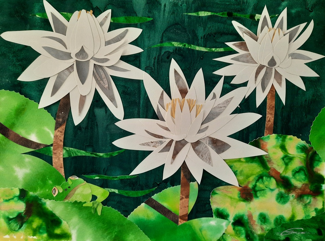 Why is bleeding of color in water exquisitely magical? Just as our creative spirit flows like a river, it seems nature intended art’s act as existential mimicry all along. Like consciousness ebbing into deep sleep, composition bends within light and rests in its own delicate balance of darkness. Side-by-side, images, colors, and elements become one connected body revealing a single breath, a tick-tock moment in newfound existence, infinite with purpose. I call it Connected Collage. Through buoyancy of voice, art sings when seen, felt within. As an artist, reflective, dare I yield such arduous humility in practice, in preach? Yes.