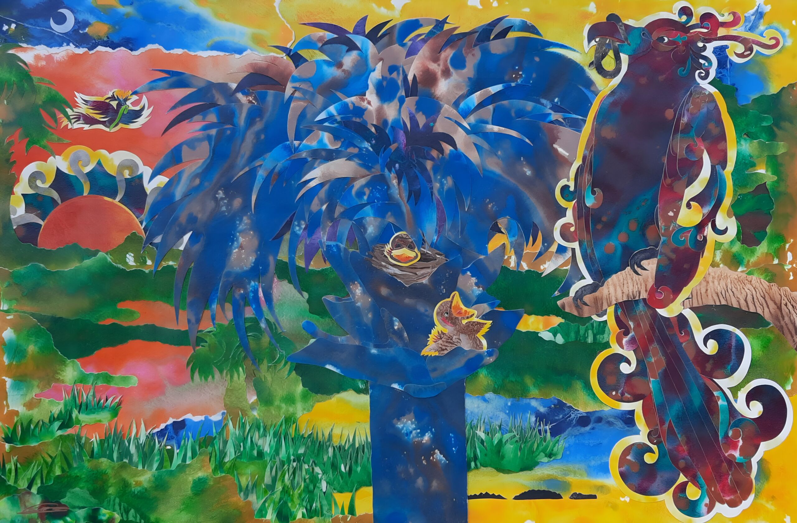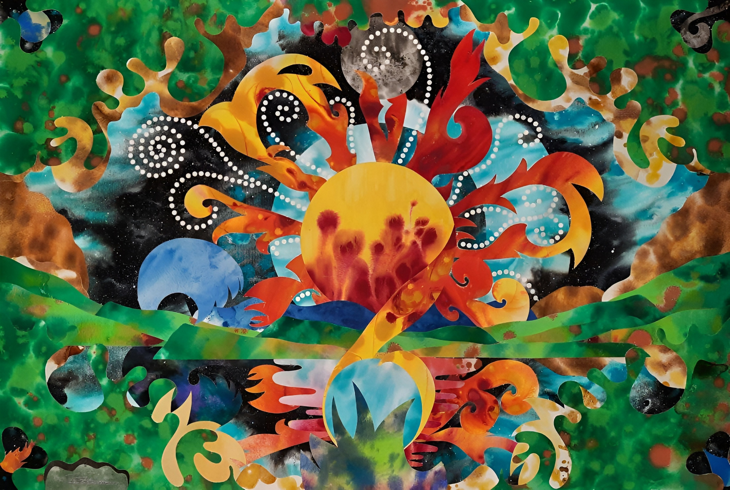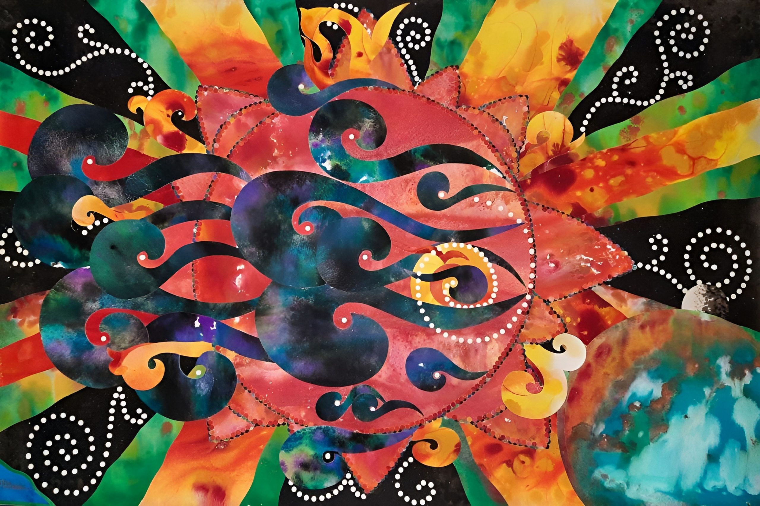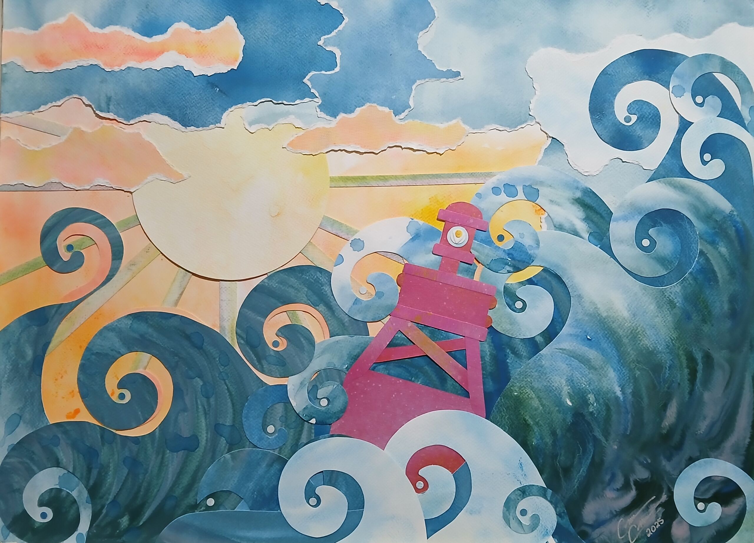 Why is bleeding of color in water exquisitely magical? Just as our creative spirit flows like a river, it seems nature intended art’s act as existential mimicry all along. Like consciousness ebbing into deep sleep, composition bends within light and rests in its own delicate balance of darkness. Side-by-side, images, colors, and elements become one connected body revealing a single breath, a tick-tock moment in newfound existence, infinite with purpose. I call it Connected Collage. Through buoyancy of voice, art sings when seen, felt within. As an artist, reflective, dare I yield such arduous humility in practice, in preach? Yes.