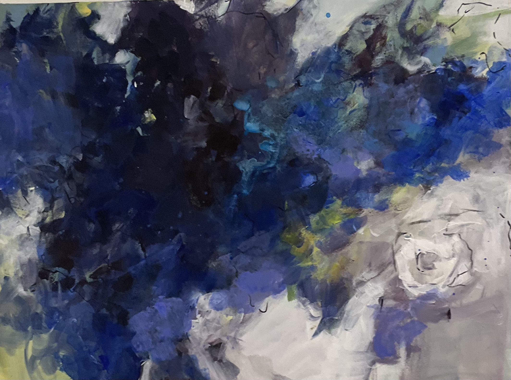 My paintings are about movement. My first art form was dance, which has informed my paintings of figure, flowers and landscape. I am interested in how to translate bodies in motion, action through brush stroke, washes that can create the moment and intention of the painting. Currently I am working on a series of paintings focused on flowers, which are a great palette to describe color, form and reflection. For this series I am using acrylic paint, which has loosened up my options to create movement in a 2 dimensional space, and perhaps a bit of mystery that can act like a reflection for the painter and viewer.