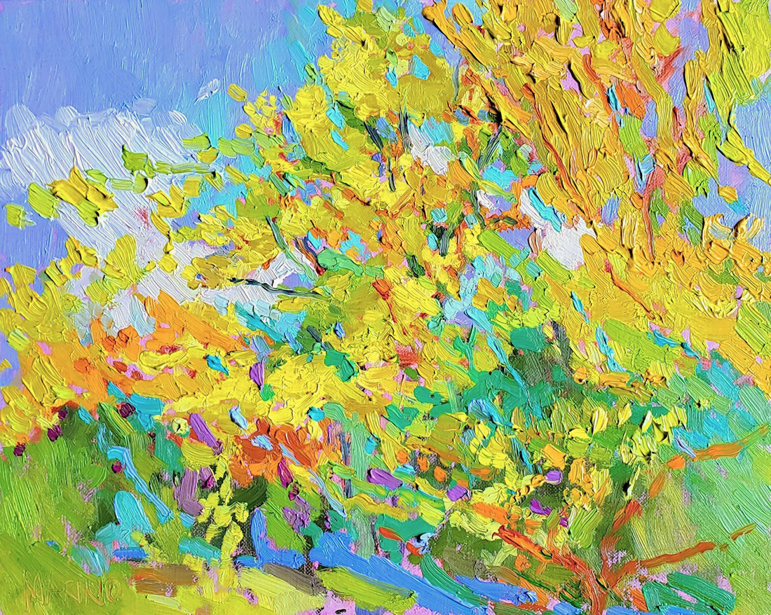 My landscapes present a dialogue in color and light. Whether I am painting en plein air or in the studio, capturing those overlooked spaces in the landscape environment, my compositions are about those serendipitous discoveries. They come to life in a bold spectrum of tones. My works employ the use of oil, soft pastel, watercolor, and graphite. They are filled with light and color and accentuated by the juxtaposition of brush and mark making. I draw inspiration from 20th-century Expressionists and modern architecture. The paintings are evocative; sometimes they are full of movement, and sometimes they are quiet, dreamy, still, and reflective, but they always portray an atmosphere of spontaneity. My subjective and creative style captures the beauty of the living world. Whether in plein air or studio, the importance of freshness, like the day they were painted, is paramount.
