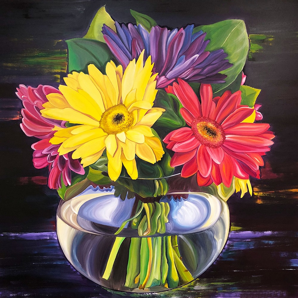 Every day I wake up inspired by the world around us: the colors, details and elements that make up our surroundings. I am fascinated by life’s details, and I like to reflect this in my everyday life and in my career as an artist. I constantly study and photograph the world around us and use these references and experiences in my artwork and in my teaching. I like to vividly capture these personal interactions and bring them to life for my audience in large-scale oil, acrylic and colored pencil paintings. I work as a full-time artist, mother, small business owner and private art instructor.