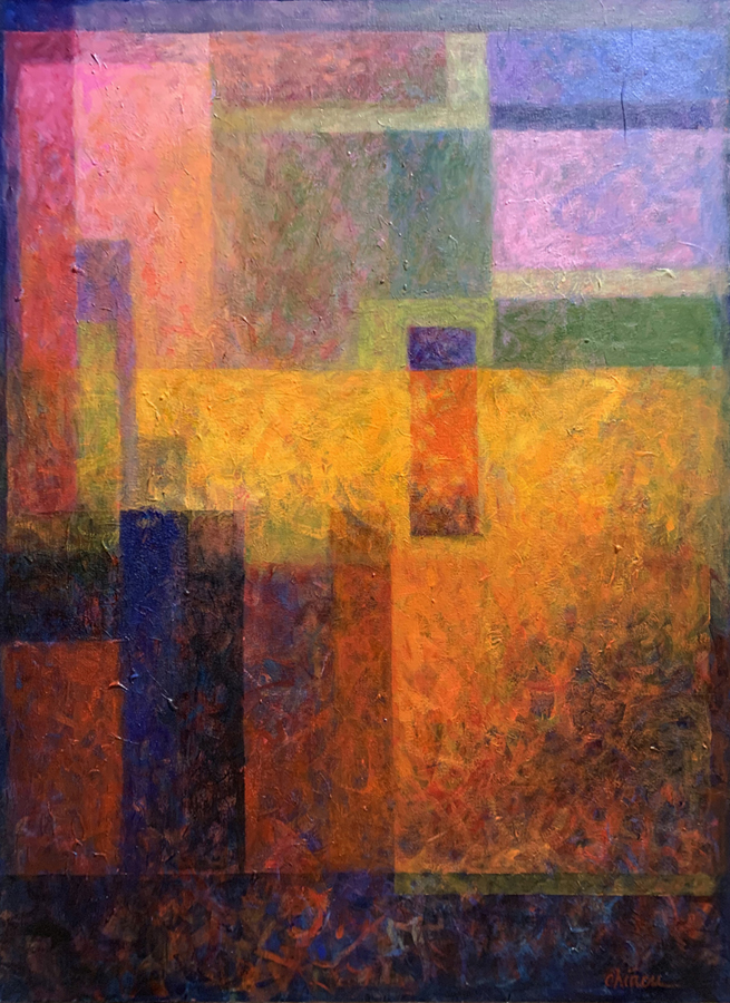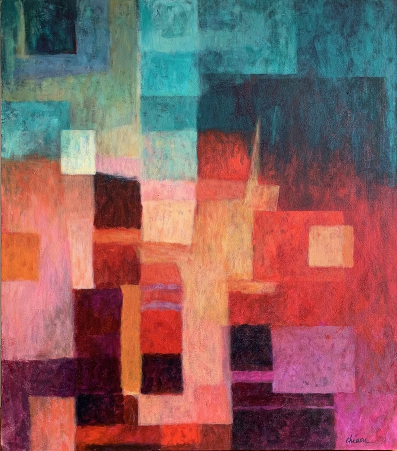 I have been exploring color relationships and the interplay between shapes, light, and shadow for my entire career. Color is the driving force behind all of my art, and experimenting with a variety of mediums, materials, and sizes is an integral part of my creative process. I do not limit myself to one painterly approach; rather, I work through an idea or a theme to create a series, and then I use an element from that series as a jumping off point for newer work. My style is constantly fluid and evolving. My art is self-contained and refers to nothing outside of itself; it needs no explanation to be fully understood. The goal of my art is to elicit an emotional response from a viewer. I hope that the colors, shapes, textures, and methods that I use speak for themselves and communicate a visual harmony that I seek to achieve.