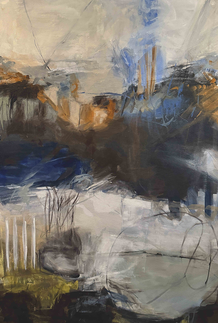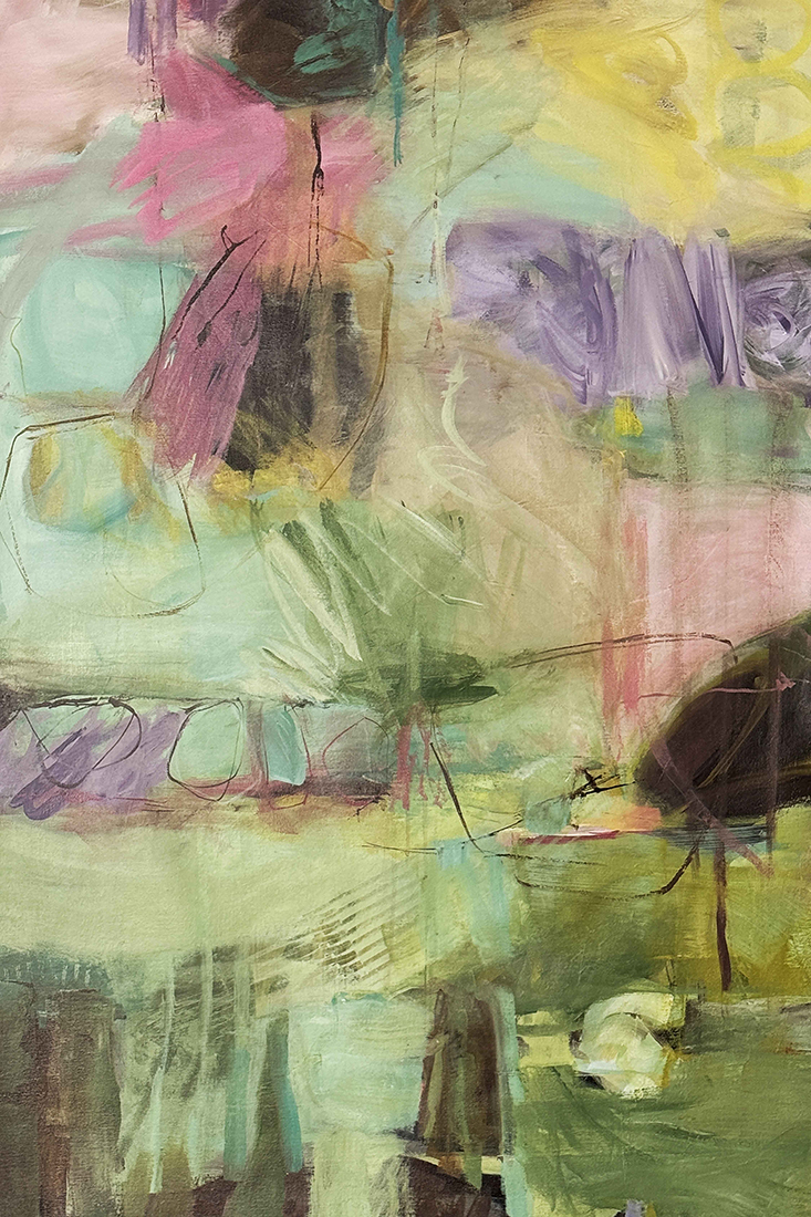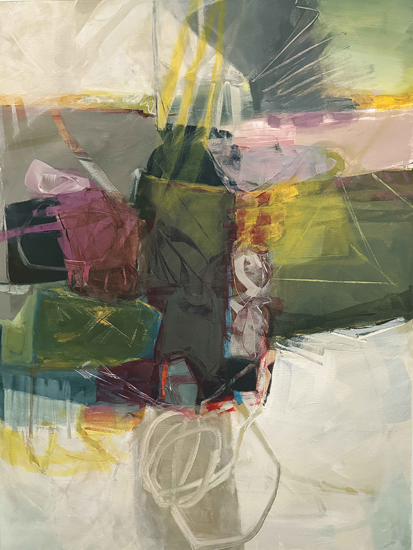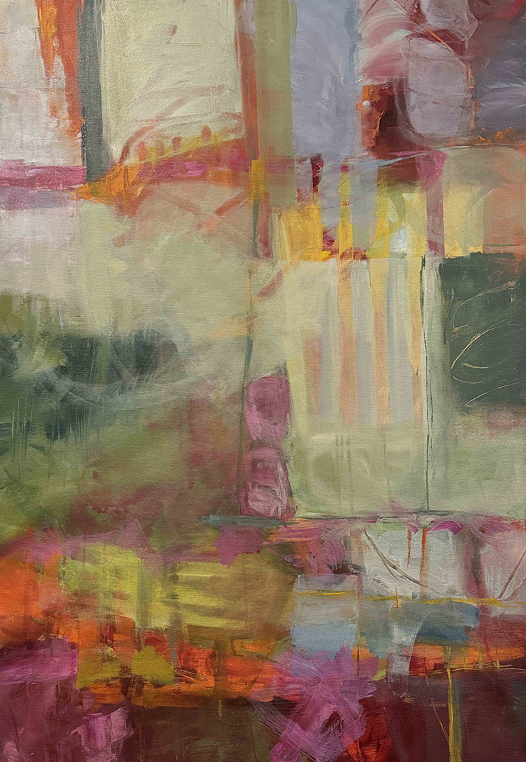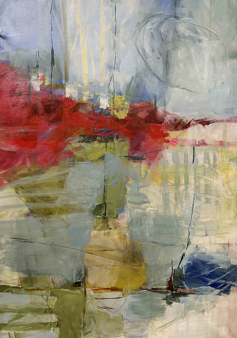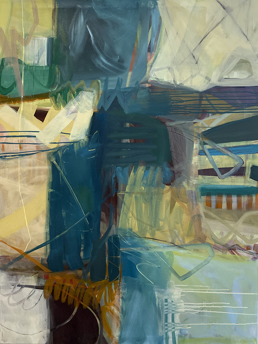 The Essence of Abstraction in My Artistic Practice Curiosity has led me to become an abstract painter. I am constantly drawn to the question: Is it possible to discern “real/not real”? For me, this is the essence of abstraction and the very question that keeps me engaged, both in the studio and in life. Without any “real” distraction, I am free to contemplate, discover, and escape. Like my viewers, I hope to find a way through the picture. Yet, over time, I have found that the true beauty of abstraction is not in finding your way, but in discovering the joy of getting lost. My compositions collide and hang in balance, leading to unexpected outcomes. Dissonance is intentional and is explored through infinite variations. Much of my work is based on the perceptual landscape, transcribing both geometric and organic shapes in nature. Using my own filters of memory, sensory experiences and artistic interpretation, I can build layer after layer with quick-drying acrylics.