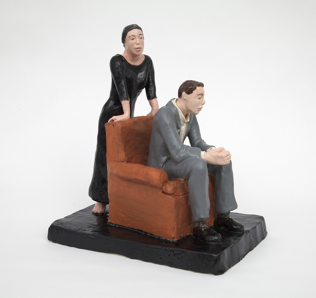 I like to work with my hands and to tell stories. My work is both figurative and literary, in the sense of telling a story. I make reference to sculptural traditions that can be traced back to the small figurative sculptures made by Meissen, Hummel and other iconic images drawn from cartoons and heroic sculpture, but on a smaller scale. The raw clay shaped into these figures, sometimes combined with other materials, and the stories they tell, create different layers of meaning and interpretation, which speaks to who we are to each other and to ourselves.