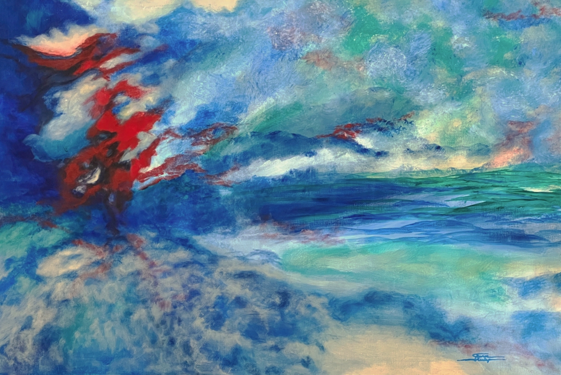 I appreciate all forms of art, but abstract art is the most interesting to me. As an abstract artist you can paint what you feel rather than what you see. It is very liberating. Starting with a blank canvas can be a little daunting but also full of possibilities. Some mornings I wake up with a design in my head and cannot wait to get it on paper or canvas. Other times, I may see a combination of colors that I have to try. For me, the enjoyment of painting comes from the unknown.
