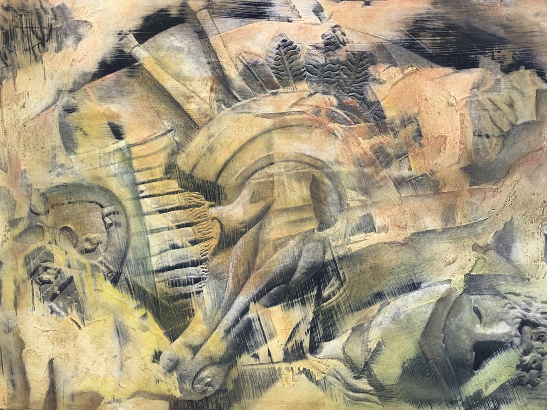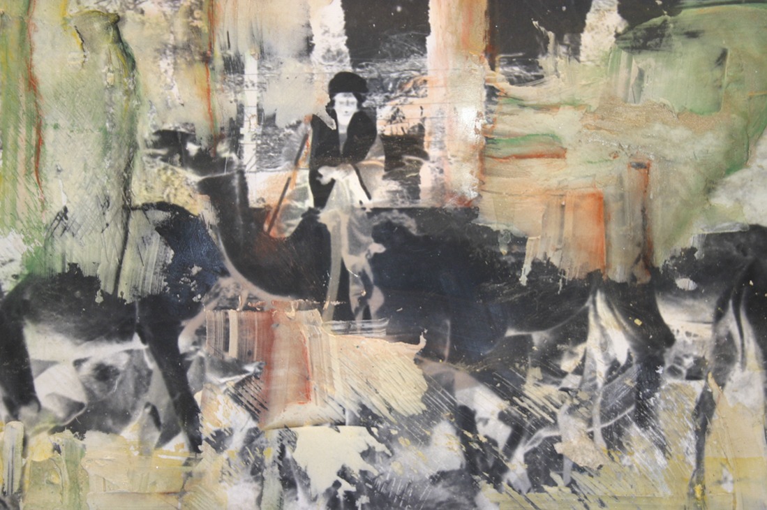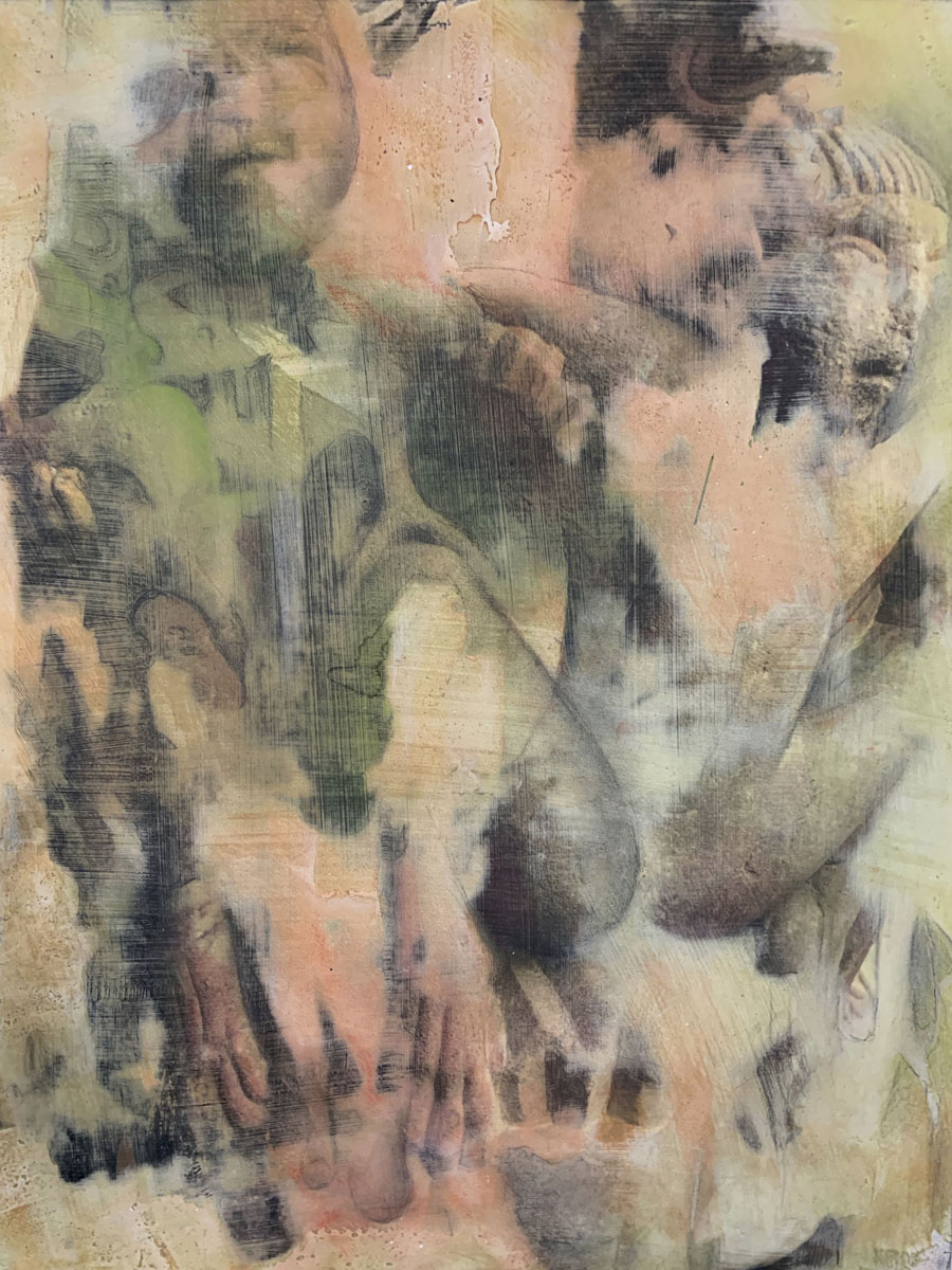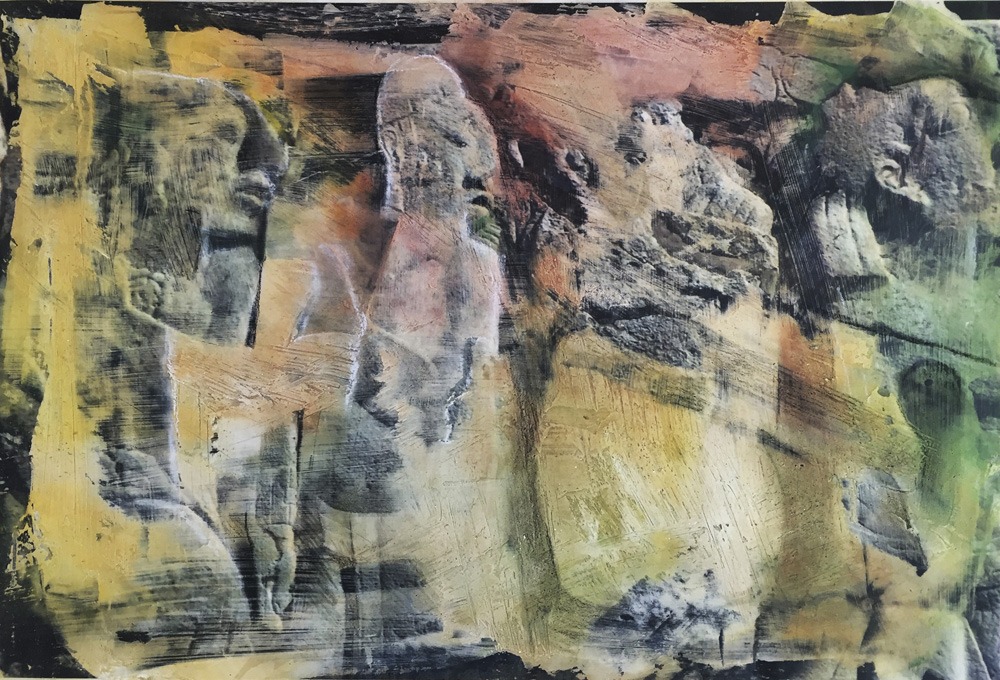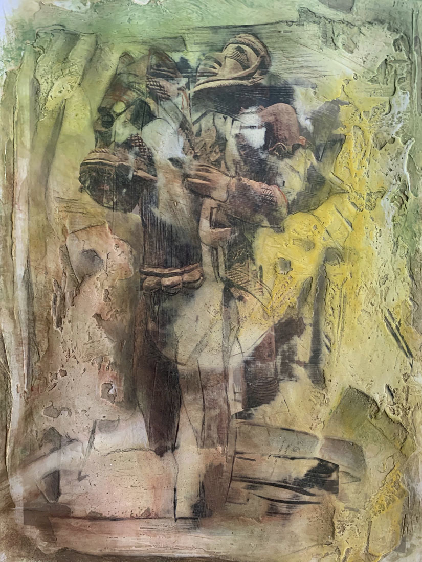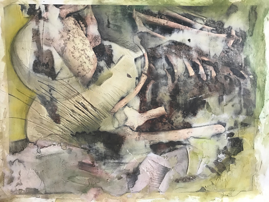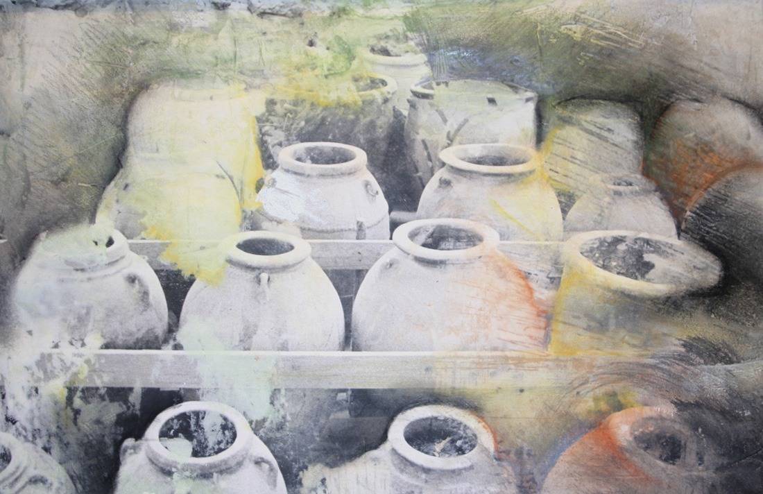 Archeology is of interest to me because we find traces of past life through it. With the ancient forms I represent, I hope to give the sense of uncovering images, buried beneath the surface of the earth. My images are first photographed on location, and then printed in a darkroom or inkjet printer. Materials are then superimposed on the surface, including gypsum, plaster, pastel, charcoal and pencil. The overall effect is one of mystery and discovery as these ancient images appear uncovered through the multitude of layers.