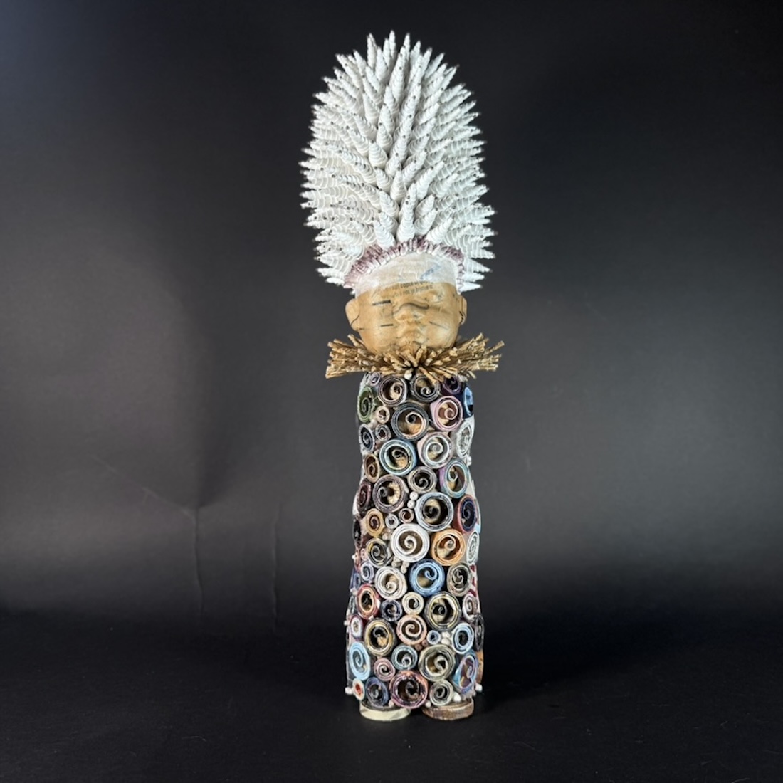 I am a Columbia, SC based artist, my work is created with strips of recycled paper collected from magazines, flyers and papers found in my daily life. I am intrigued with the colors and textures in everyday printed matter. Coiling is a very tedious and time-consuming process, it takes countless hours to roll enough strips of magazine pages into coils to create anything of substance. Once the coils are made I proceed to manipulating them into the desired shape, dome, cone or tentacle. It is an intuitive and ongoing visual experiment. The time spent creating the pieces is infinitesimal, but the love of what I do removes the burden of it and turns it into drive.
