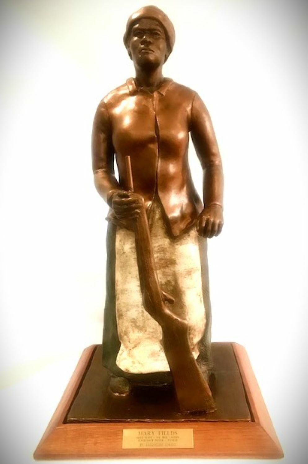 I was reading about relatively unknown African Americans, and I came across Mary Fields. I wanted to capture her essence in sculpture, and worked from a few photos. She was a freed slave who made her way by working for a convent, running a laundry, a stagecoach driver, and the first woman US mail carrier. She was 6 foot tall, cigar smoking, gun toting, and dressed in men’s clothing, but always wore a white apron. Her one concession to being a woman. She was tough and no one messed with her.