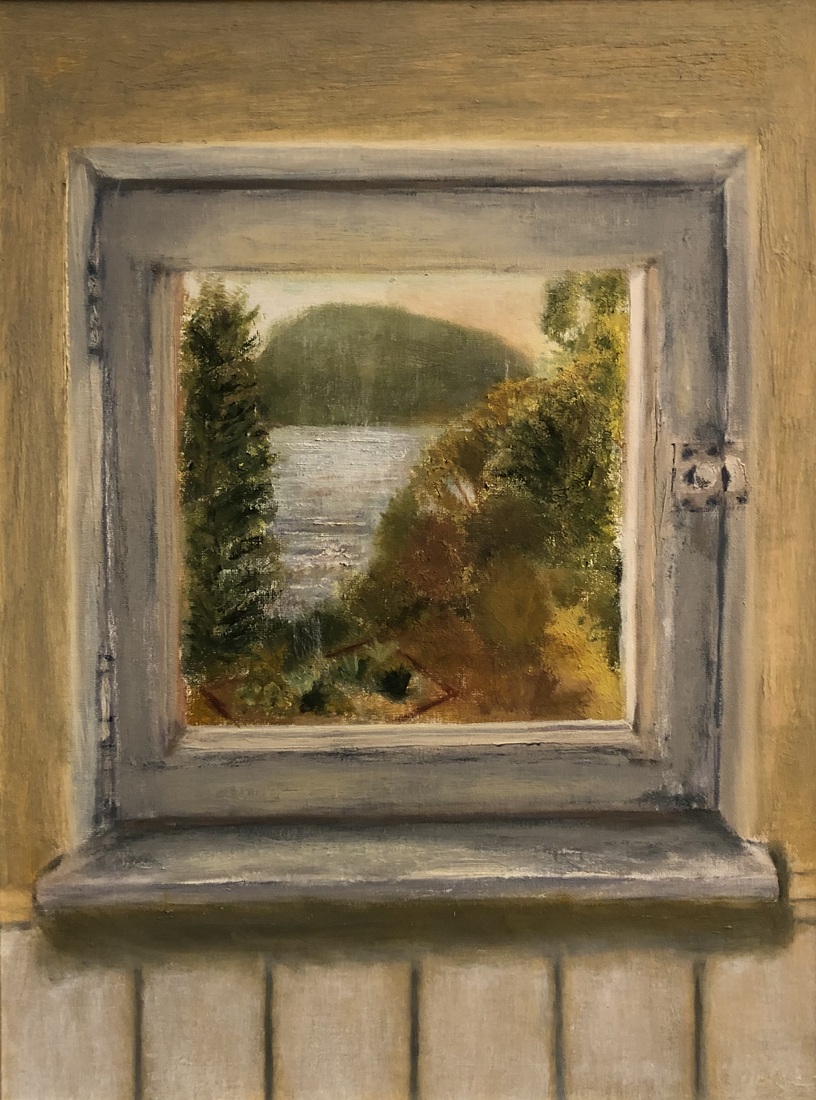 The window in this painting is from an upper floor at Wiawaka Center for Women on Lake George, an artists’ retreat where a young Georgia O’Keeffe once painted. I imagined the many women artists who have stood in this place, taking in the beauty of out the lake, contemplating their futures.