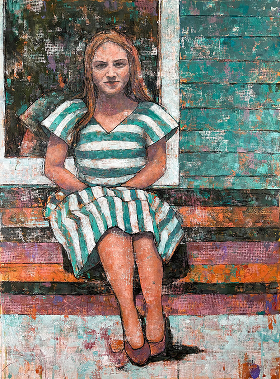 In this work, Break the Line, Step Outside to See the Light, I question traditional roles and contemplate the women who have dared to break tradition and step outside. In today’s attack on women’s rights and independence, breaking the line is more important than ever.