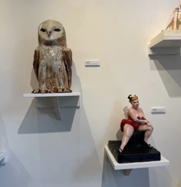 When I was a young art student, I turned to figurative work as a way of telling stories and celebrating life. I had a degree in Ceramics from RIT and a degree in sculpture from California College of the Arts. In California, I mostly made conceptual work, and it was a lot of fun and interesting, but I still loved making things and I missed that part. Also, my way of generating ideas is hands on. I may start with a material, or by finding a pose with the model. Sometimes, I just get an idea, fully formed and execute it, but mostly I work into things and ideas develop. I was very lucky to have two teachers who were students at the Bauhaus, Edith Reckendorf who taught me art history and weaving when I was in high school, and Franz Wildenheim who taught me ceramics at The School For American Craftsmen at RIT. They both had a wonderful grasp of art and craft and a deep understanding of process and meaning in art. I was also influenced by the work I did in California. Even though my work is representational it has maintained a conceptual element.