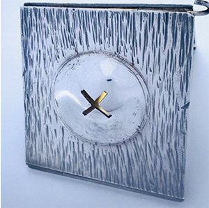 The first piece of the series is named “9/11/01 – 15 Minutes Before” (Figures 4-6). It was a beautiful clear sunny day. This piece is a triangle of high polished silver. On one side (obverse) are the Twin Towers and on the other side (reverse) is an X.