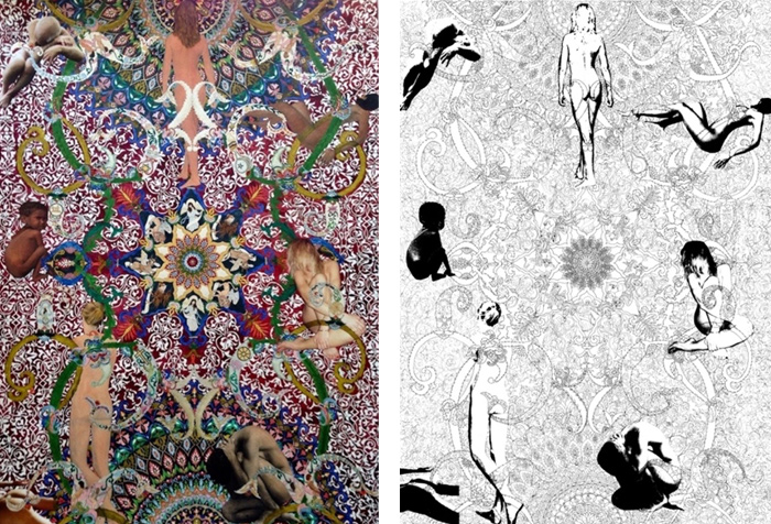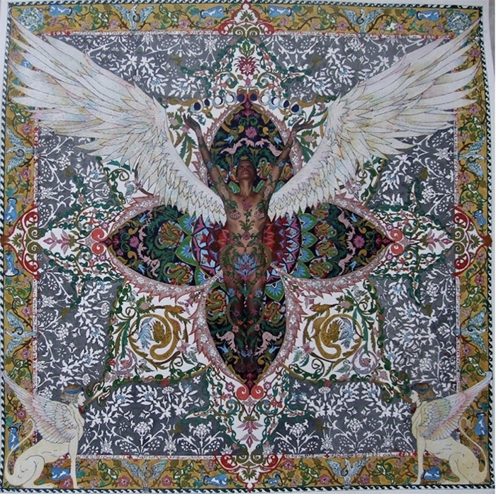 Daydream, 2013,Watercolor on Drawing and print (Figures; printed on paper, Patterns; drawing, inked and watercolor) 18 in. x 18 in. (25x25 with frame)