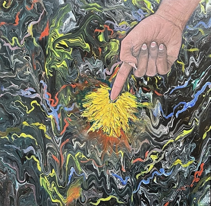 The Beginning, Oil on Canvas and Thread, 2024,48 in. x24 in.